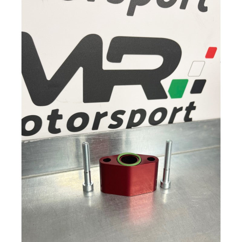Distanziale ritorno olio ricavato dal pieno a Cnc anodizzato rosso da utilizzare per montare la turbina td04 o gbc con il tubo originale della ihi